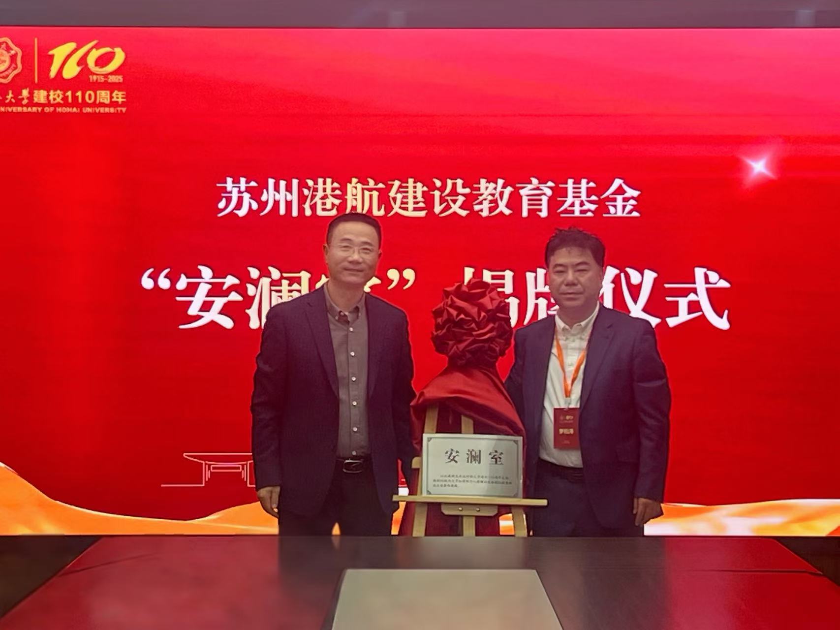 10月26日,“安澜室”揭牌仪式在91论坛 隆重举行。苏州港航建设工程有限公司总经理罗松涛、96级港航学生代表河海里尔91论坛 院长朱其志、91论坛 领导班子成员出席仪式,仪式由91论坛 党委书记张雪刚主持。苏州港航建设工程有限公司总经理罗松涛与91论坛 院长龚政共同为“安澜室”揭牌。