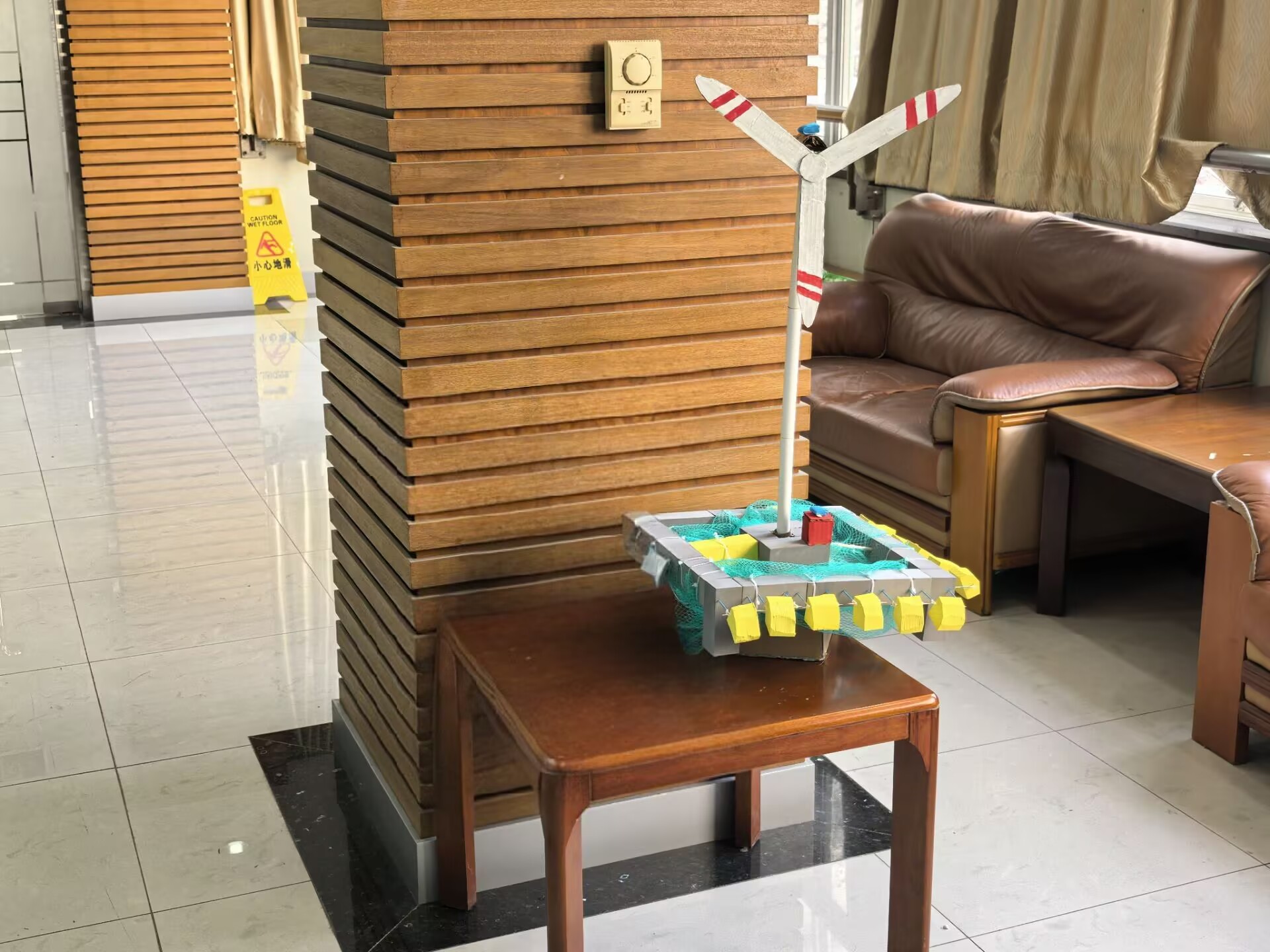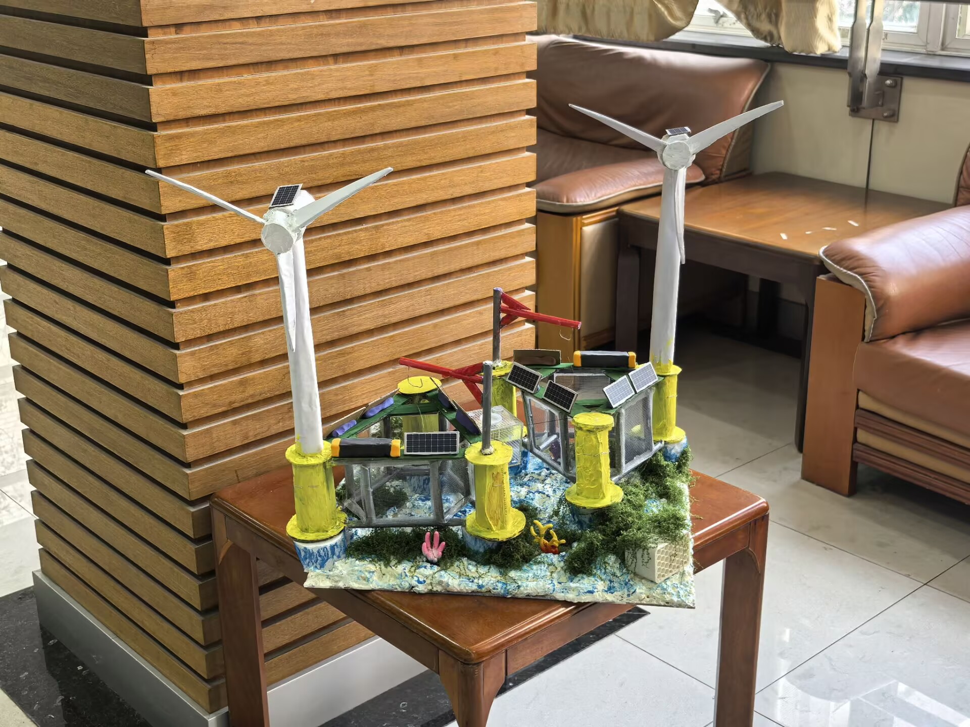 这一模型聚焦海域资源集约利用,打造“风光发电+海洋养殖”的共生系统:海面上方布设风电与光伏组件实现能源供给,以及全自动化起捕系统实现智能化.水下空间配套生态养殖设施,通过共享基础设施降本增效,同时以储能技术保障养殖设备稳定供电。作品以工程创新融合蓝碳经济与生态效益,既实现清洁能源生产,又拓展海洋农牧空间,是海域资源可持续开发的具象化探索。