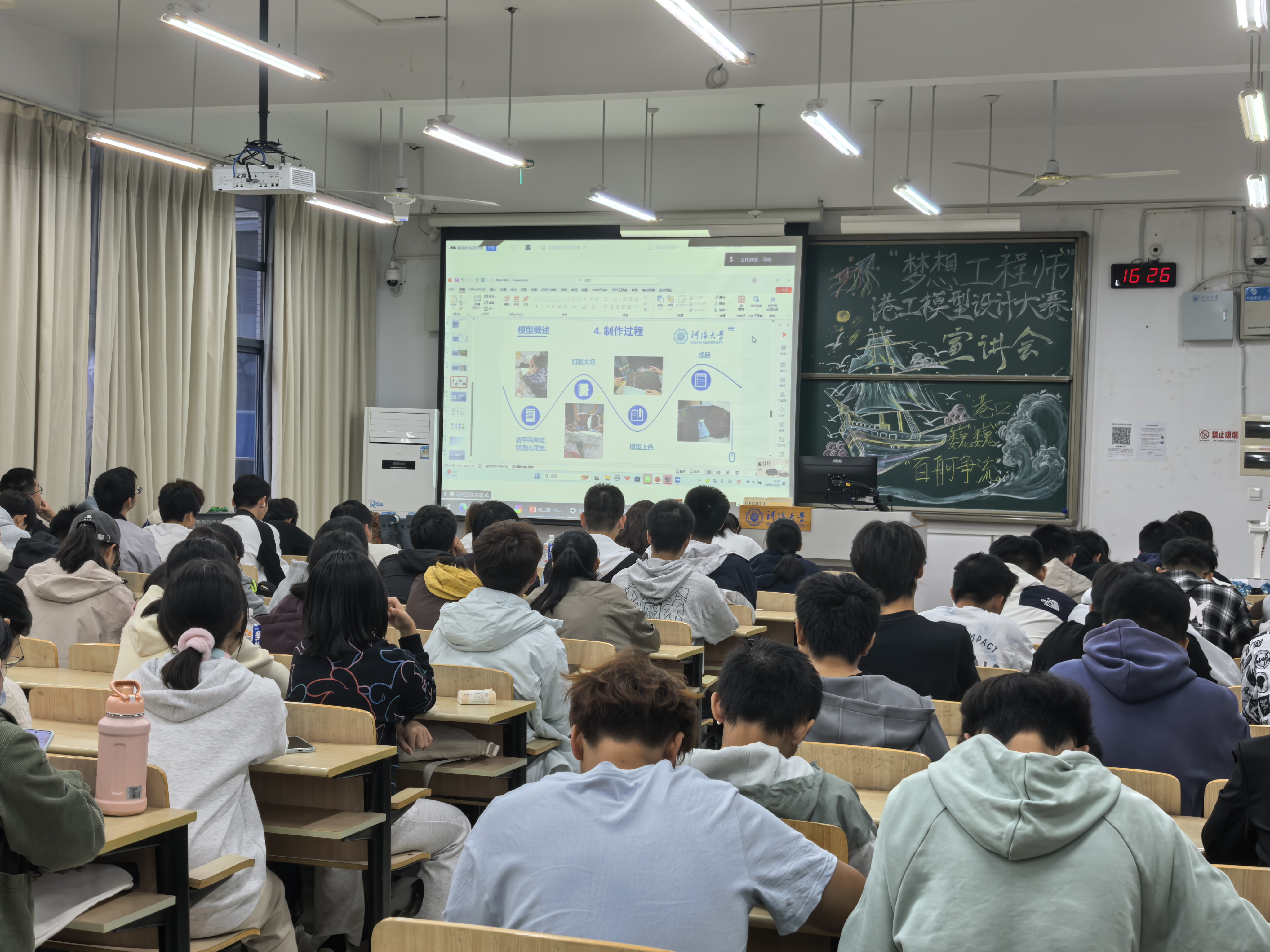 两场宣讲会上,欧阳峰老师讲解港工结构的设计逻辑,往届获奖学子分享选题构思与答辩技巧,帮助参赛选手深刻领悟到港工模型兼具的工程美学与实用价值,鼓励青年学子聚焦问题导向、强化创新意识。